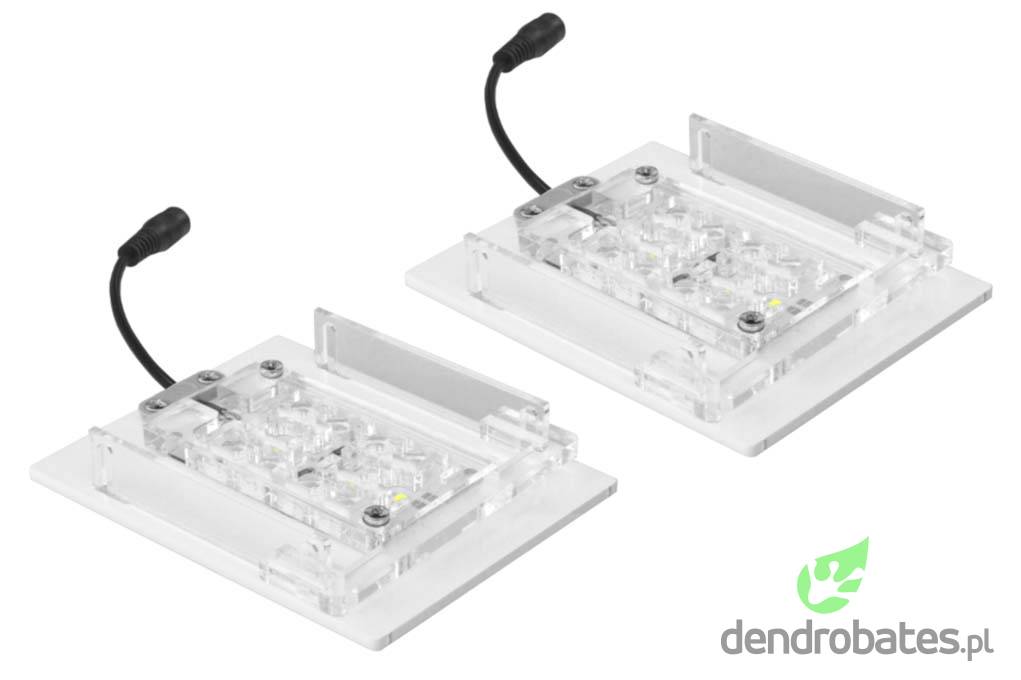 Oprawa oświetleniowa SKYLIGHT TINY w wersji RH oraz RV przeznaczona jest do oświetlania wnętrz terrariów oraz wiwariów wyposażonych w szklany sufit. Oprawa została stworzona z myślą o zbiornikach, w których uprawiane są żywe rośliny (najczęściej tropikalne). Spektrum światła emitowanego przez oprawę jest odpowiednie dla prawidłowego procesu fotosyntezy, czyniąc ten produkt odpowiednim dla uprawy nawet najbardziej wymagających gatunków roślin. Oprawy SKYLIGHT TINY RH oraz RV są oferowane w zestawach złożonych z 1, lub większej ilości niezależnych modułów, co pozwala na oświetlenie kilku sąsiadujących zbiorników, lub jednego większego terrarium. |